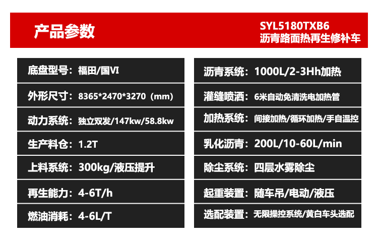 3)?具備出色的熱再生功能,舊瀝青路面再生利用率達到100%,坑槽挖補出的廢舊瀝青混合料無需粉碎,可百分百現場熱再生。具有較大產量、較高效率、較低施工成本、節(jié)能環(huán)保性能突出等特點。